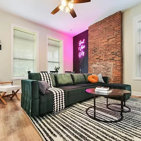The 139 ft² 9 Bedroom House With King-Sized Bed Near Bakery Square Pittsburgh offers easy access to such tourist sites as St. John Baptist Church, located approximately 5 minutes' walk away. At this 5-bedroom apartment, Wi-Fi and a free private parking lot are also provided.